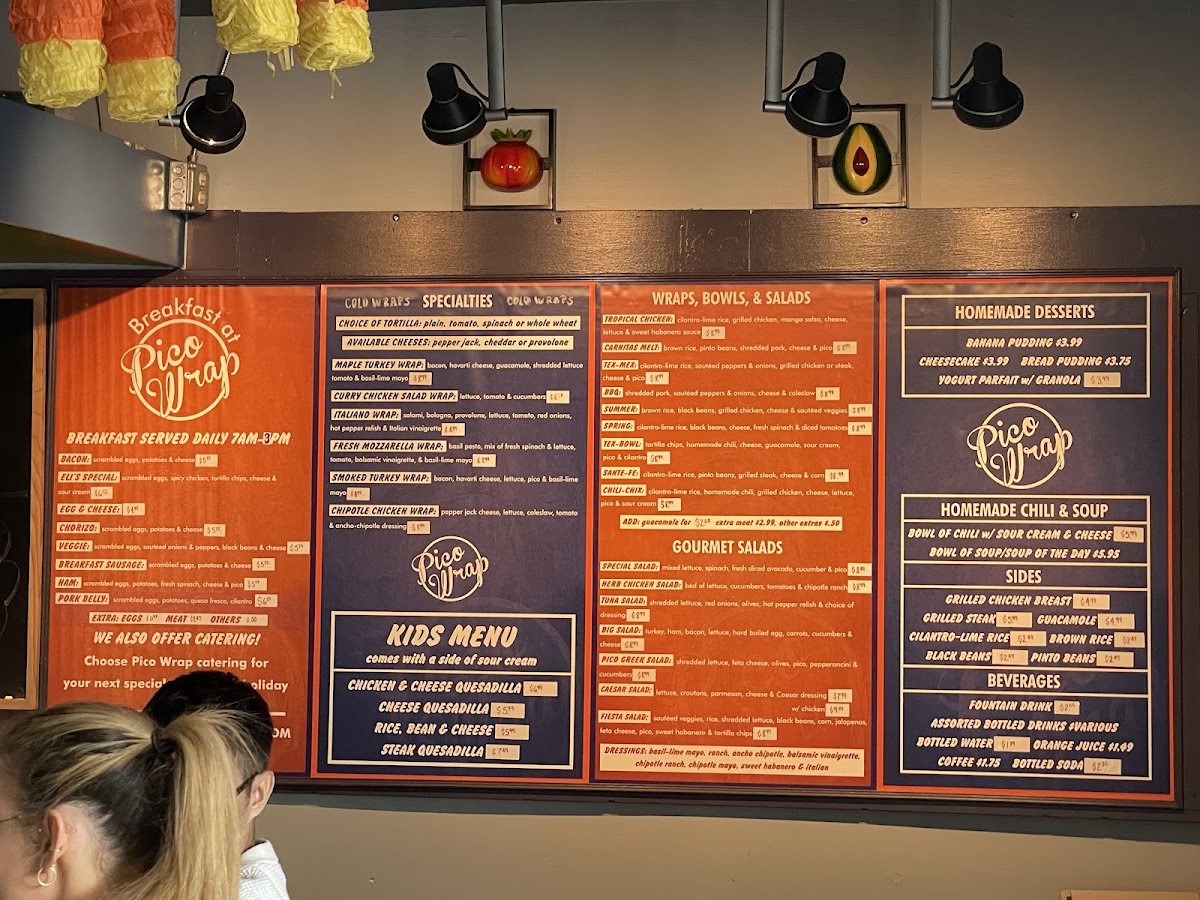 with grilled chicken or steak, cilantro-lime rice, onions, peppers, cheese, & pico